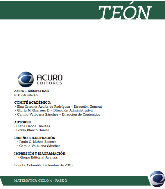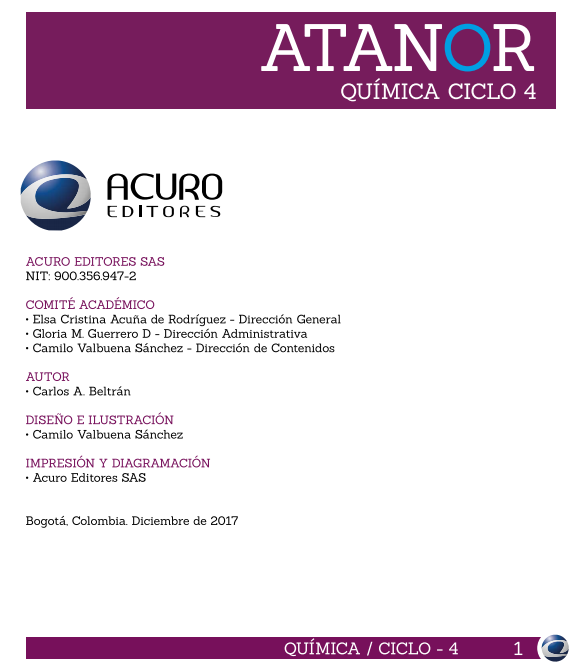 noveno Informacion LIBROS CICLO 4 FASE 2 Libros Noveno ATANOR ATANOR Libro de Química PROBUS PROBUS Laboratorio de Química EUREKA EUREKA Libro de Física TEÓN TEÓN Libro de Álgebra VÉRTICE VÉRTICE Libro de Geometría Manual de convivencia